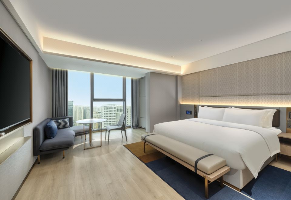 高級大床房(零壓床墊|小冰箱|智能客控|大落地窗)